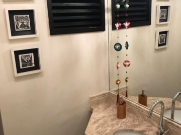 VARANDA, SALA E LAVABO COM PISO PORCELANATO.