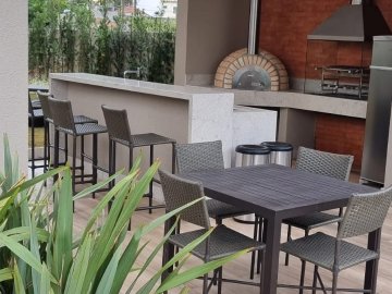 2 Dormitórios, Sala, Cozinha, 2 Banheiros, Área de serviço, Varanda gourmet e 2 Vagas de garagem.