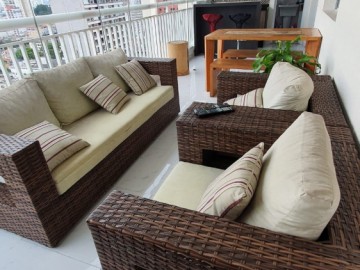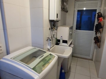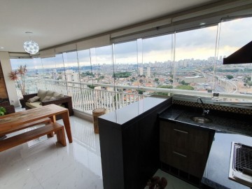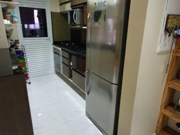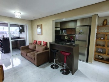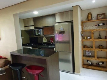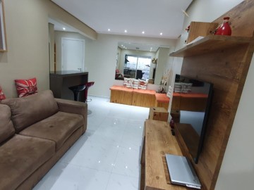 Espaçoso apartamento 77 metros quadrados, 2 vagas de garagem, 2 dormitórios sendo 1 suíte. Sacada fechada com vidros e persiana rolo, com churrasqueira gourmet mobiliada.