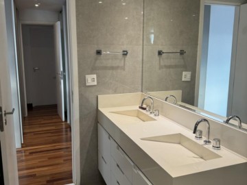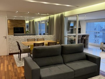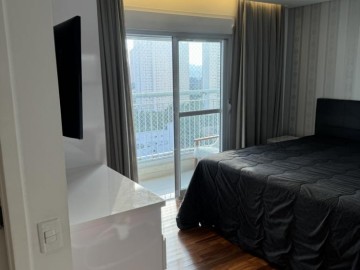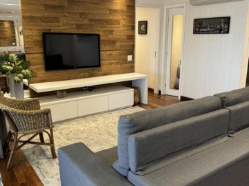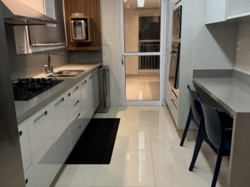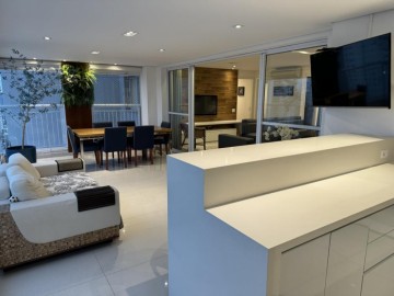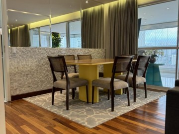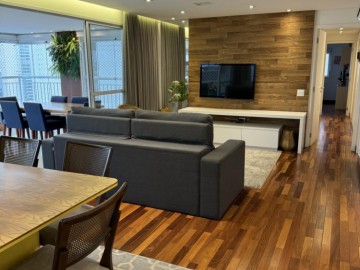 Piso de madeira em cumaru na sala e quartos, marcenaria em laca com revestimento de vidro na cozinha, forro de gesso e projeto luminotécnico, ar-condicionado Daikin na sala e nos quartos.