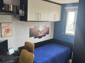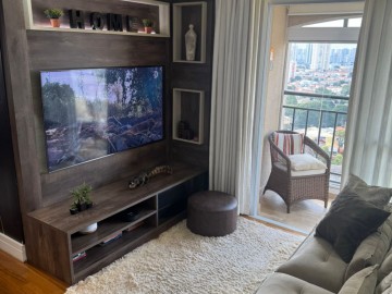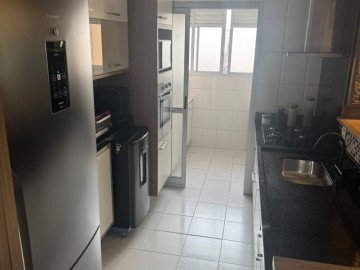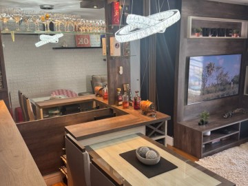 Condomínio de torre única, apartamento com 3 dormitórios, 2 banheiros (1 suíte), cozinha americana, varanda com churrasqueira, piso porcelanato e 2 vagas de garagem com depósito privativo.