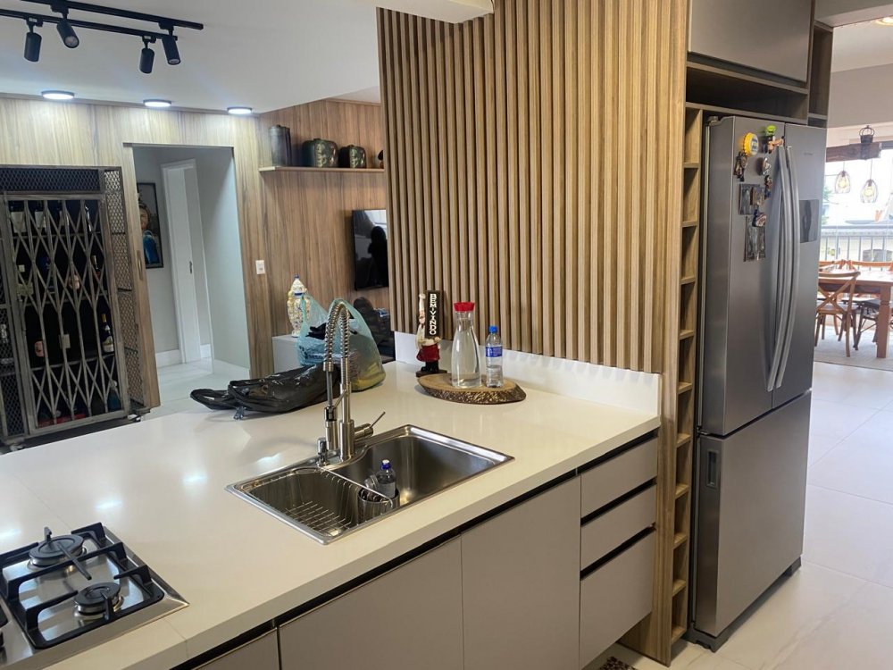Apartamento de 116 m² com planta original de 3 suítes (uma delas foi integrada à sala para criar um ambiente amplo e aconchegante, ideal para momentos em família), lavabo e passagem íntima que separa a área social dos dormitórios, proporcionando privacidade e conforto. Varanda gourmet integrada à sala, marcenaria de alto padrão em todos os ambientes.