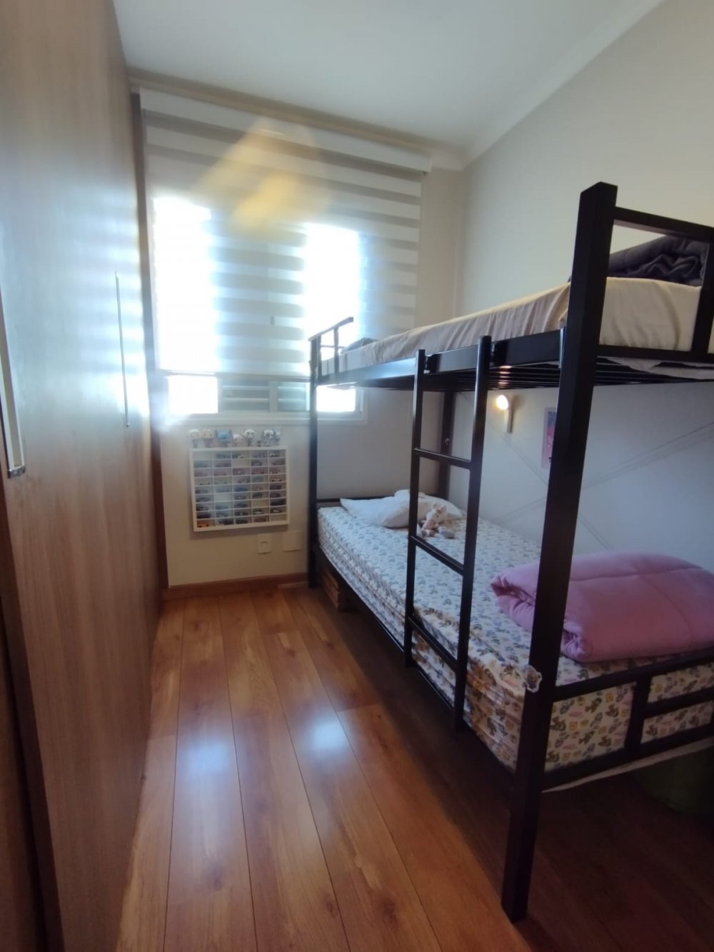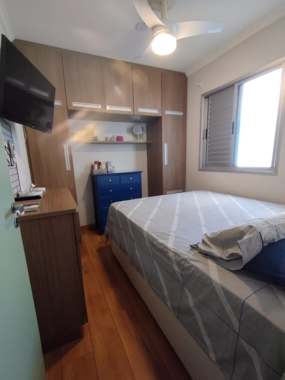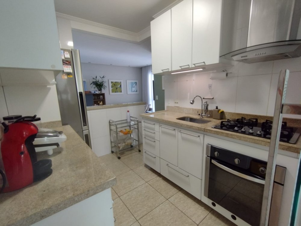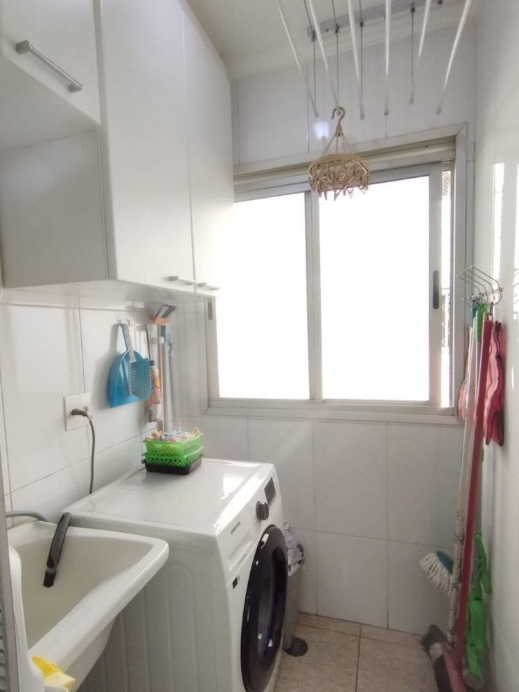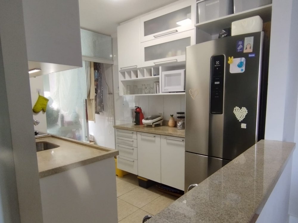 2 dormitórios com armários planejados, cozinha planejada, sala 2 ambientes com sacada, área de serviço com armários, 1 banheiro e 1 vaga de garagem.