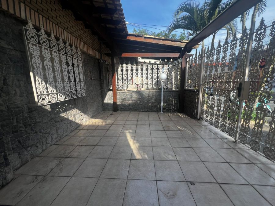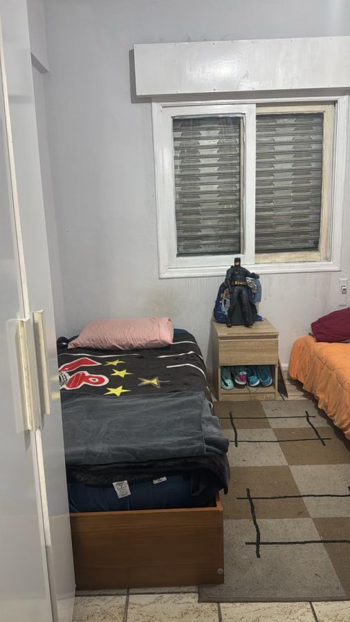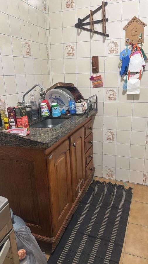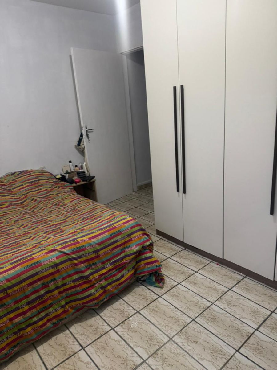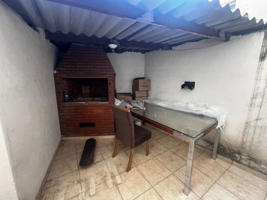 2 dormitórios, sala, cozinha, banheiro, área de serviço, quintal com churrasqueira, dormitório de serviço e uma vaga.