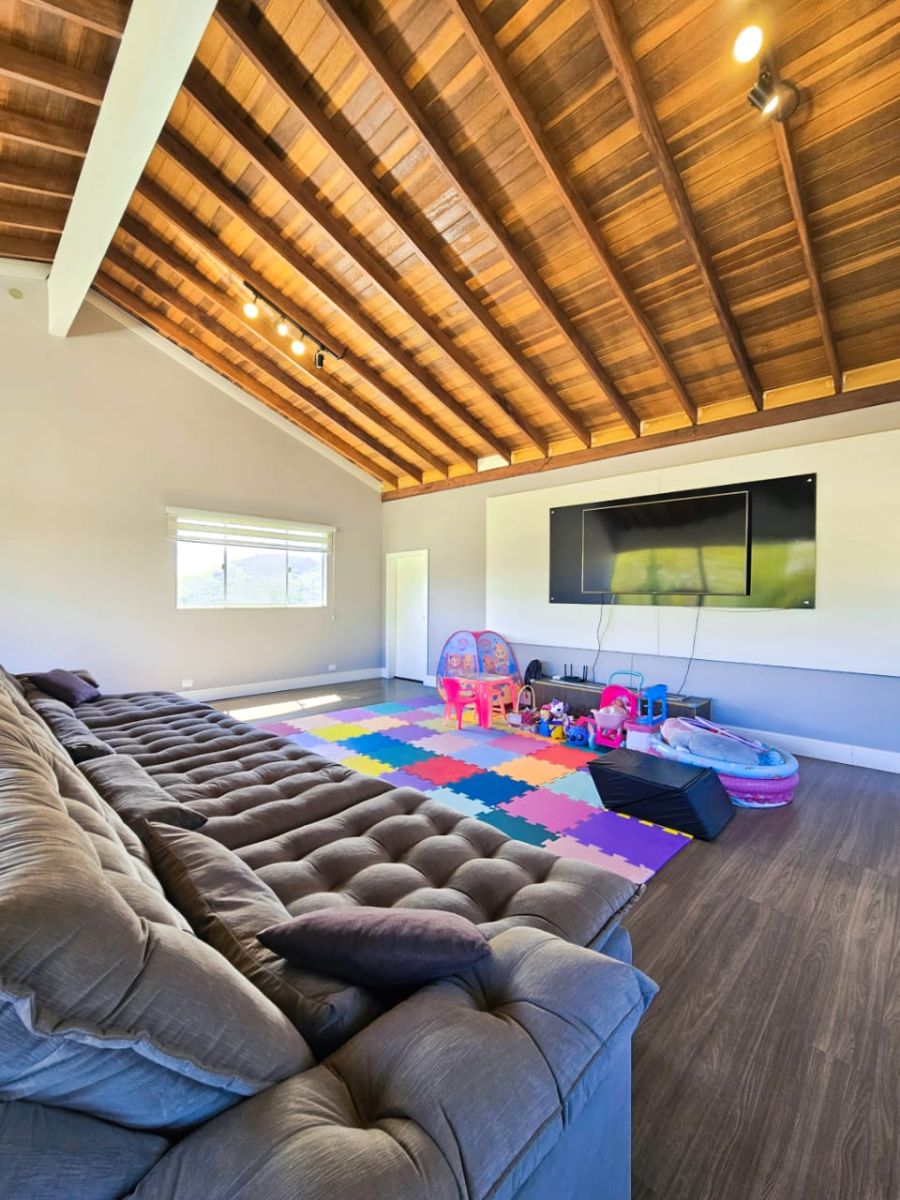 3 Dormitórios (sendo uma suíte máster com closet, amplo banheiro), casa impecável, mezanino com linda vista, piscina com raia e aquecimento solar.