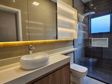 planejados de alto padrão na cozinha, área gourmet, lavanderia e todos os banheiros.