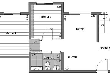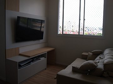 2 dormitórios, sala, cozinha, banheiro, área de serviço e 1 vaga de garagem.